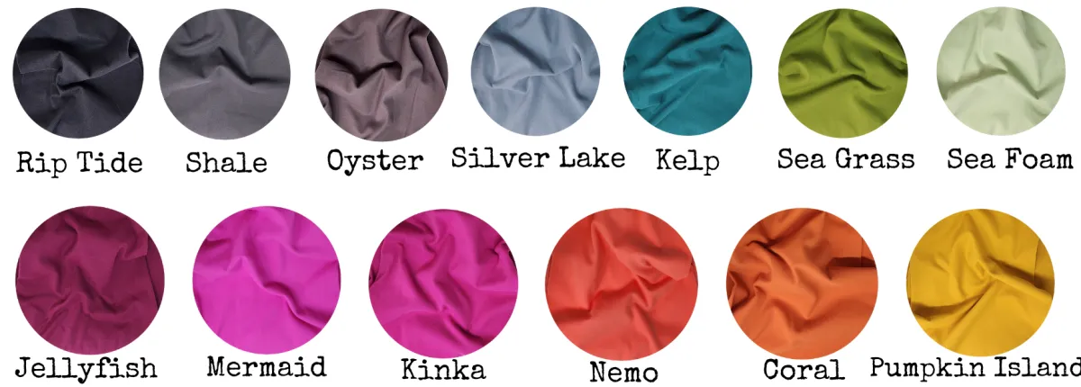 Sea Grass - Kelp - Sea Foam - Silver Lake - Oyster - Shale - Jelly Fish - Kinka Pink - Mermaid - Coral - Nemo - Pumpkin Island - Rip Tide